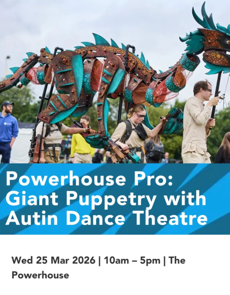 The CPD is led by Johnny Autin, Creative Director of Autin Dance Theatre: an award-winning choreographer and dance leader specialising in multidisciplinary choreography, street theatre and contemporary dance, with over 20 years’ experience across professional, community and educational settings. Johnny’s facilitation brings together clear technique, ensemble practice and playful exploration, supporting experienced artists to deepen precision, stamina and performance detail in large-scale, multi-operator work.
